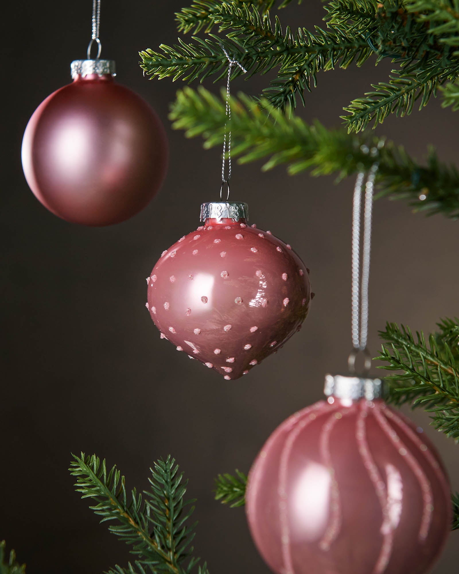 Showcase this new and exciting range in your home at Christmas with 20 stunning, hand-finished baubles in subtle shades of baby pink for your Christmas tree.