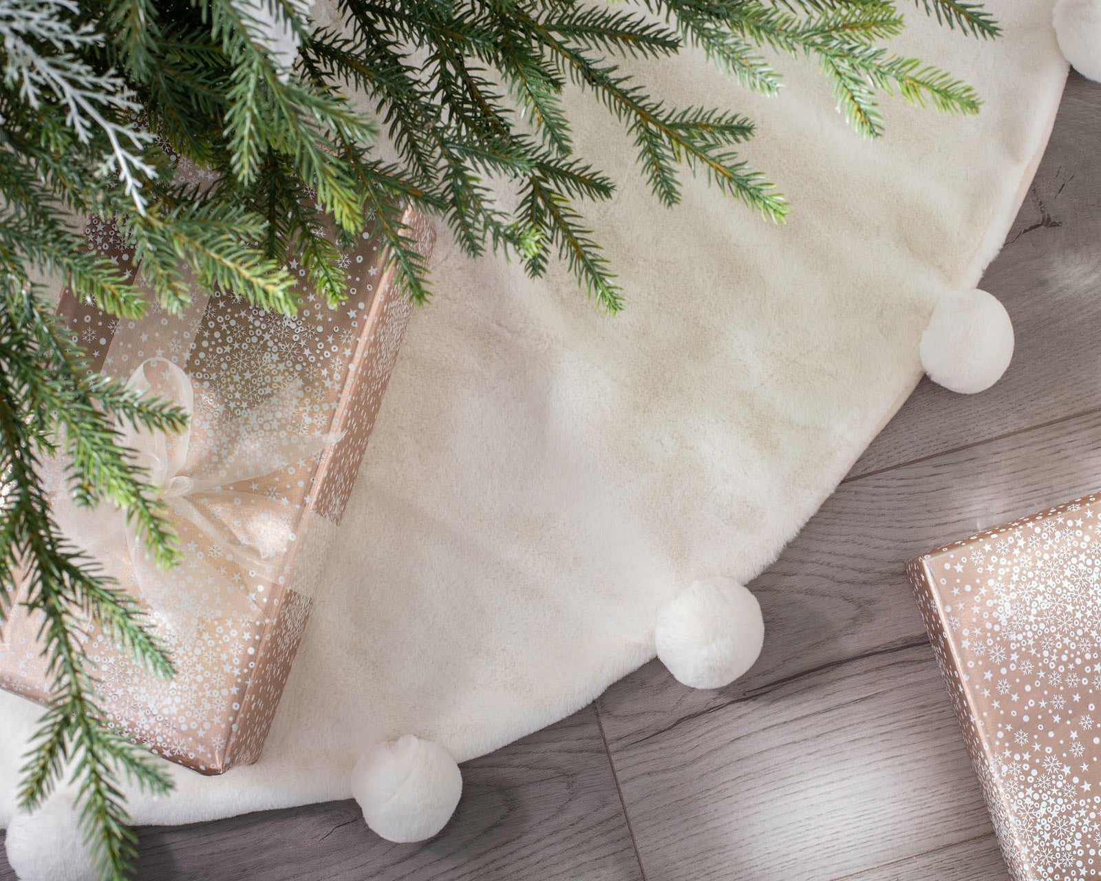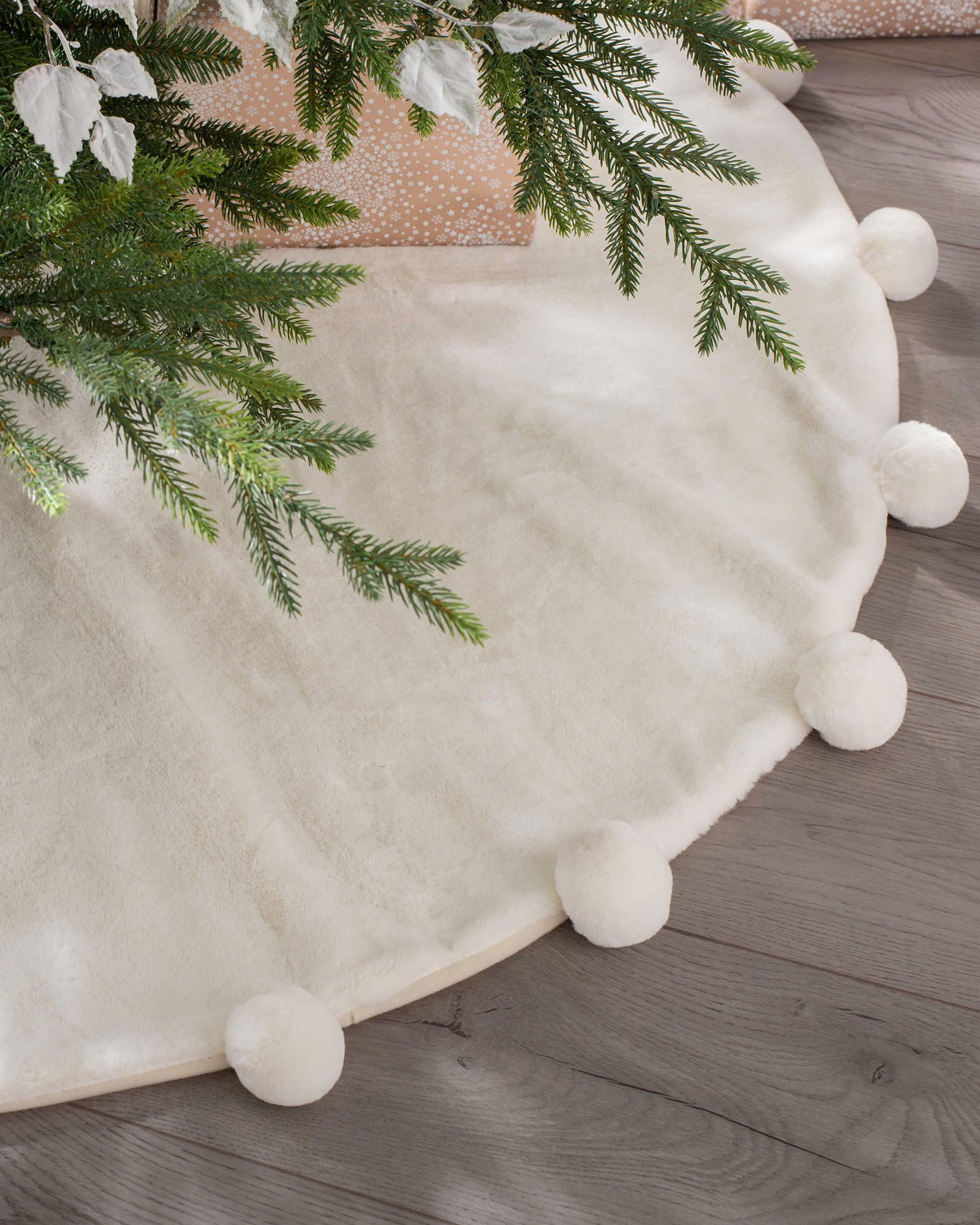 Fur Pom Pom Tree Skirt, Cream, 120 cm