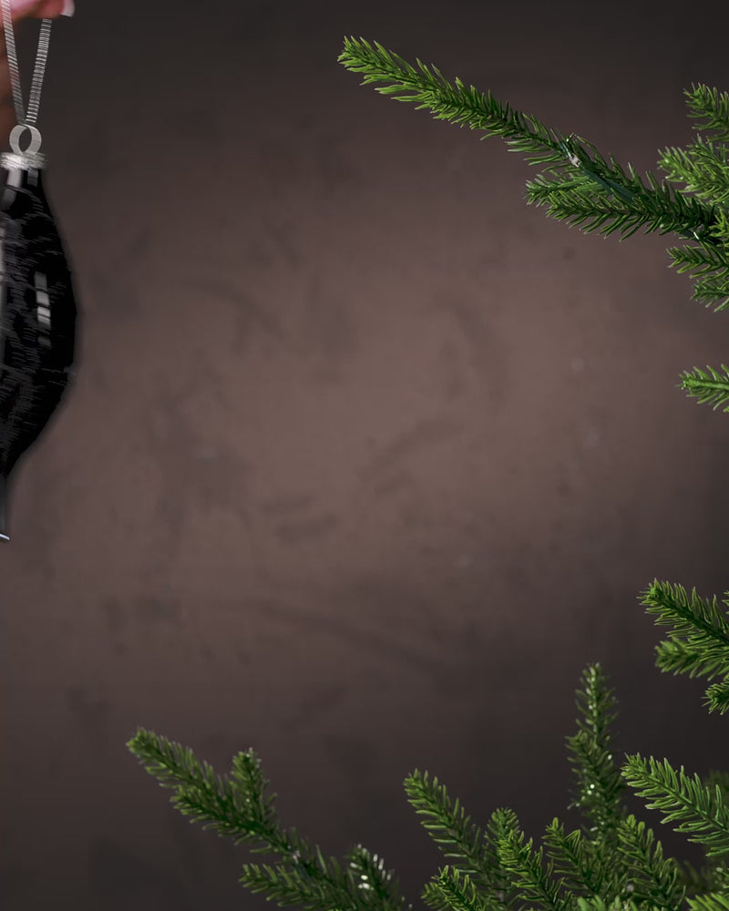 The rich black finish is elevated with gloss, matt, mottled and glitter textures that catch and reflect tree lights beautifully. Perfect for modern themes, monochrome palettes, or for adding contrast to metallic and jewel-toned decorations.