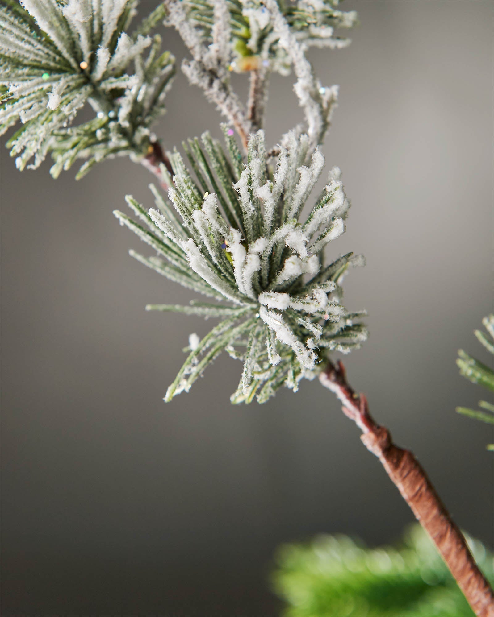 Bring a natural wintry touch to festive décor with this 77 cm snow flocked pinecone spray. Featuring pinecones and pine needles dusted with a snow effect, it’s perfect for Christmas trees, wreaths, garlands, or centrepieces. The 32 cm brown stem allows flexible positioning and secure placement. Designed for indoor seasonal use.
