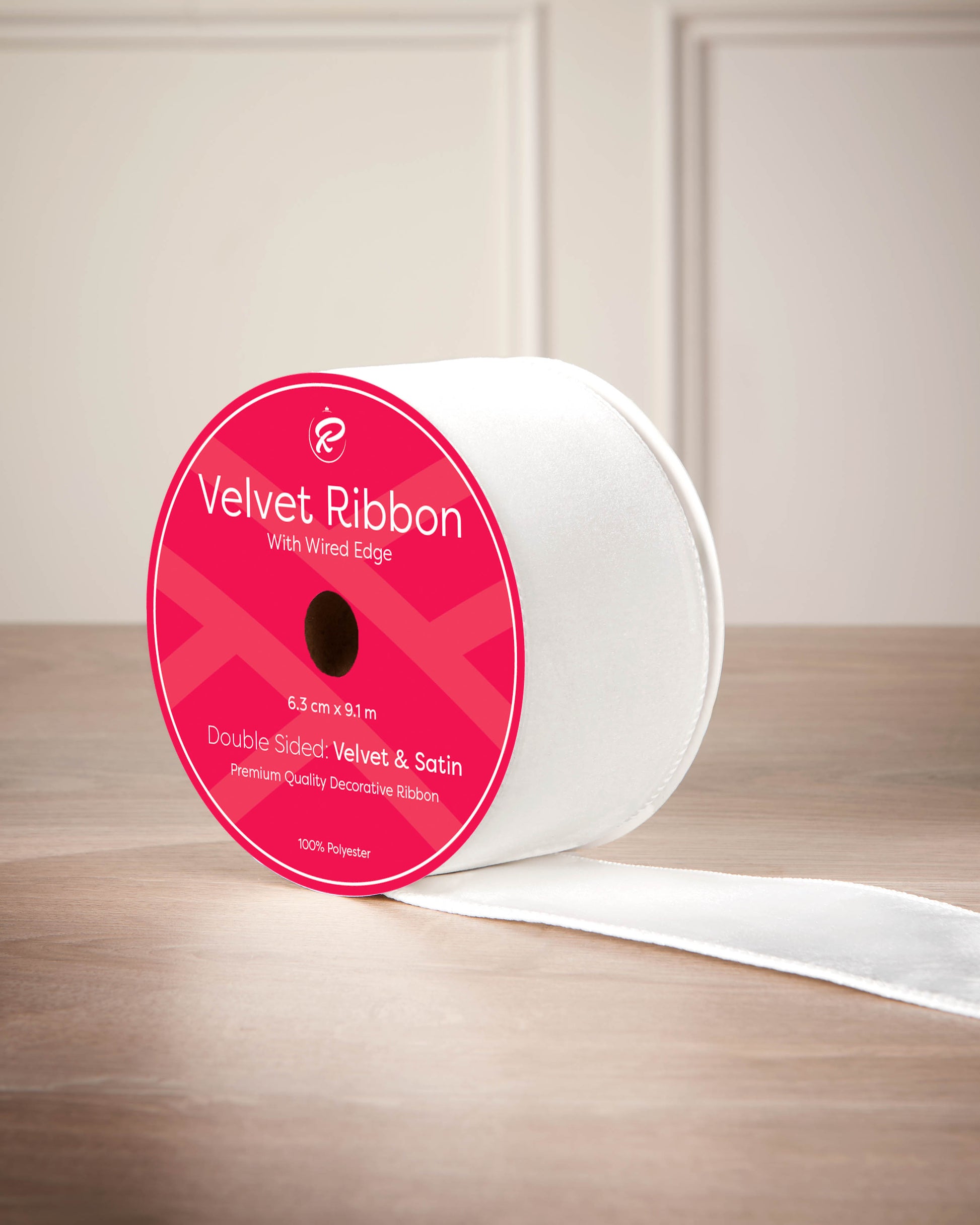 Double-Sided Wired Velvet Ribbon, White, 9 m