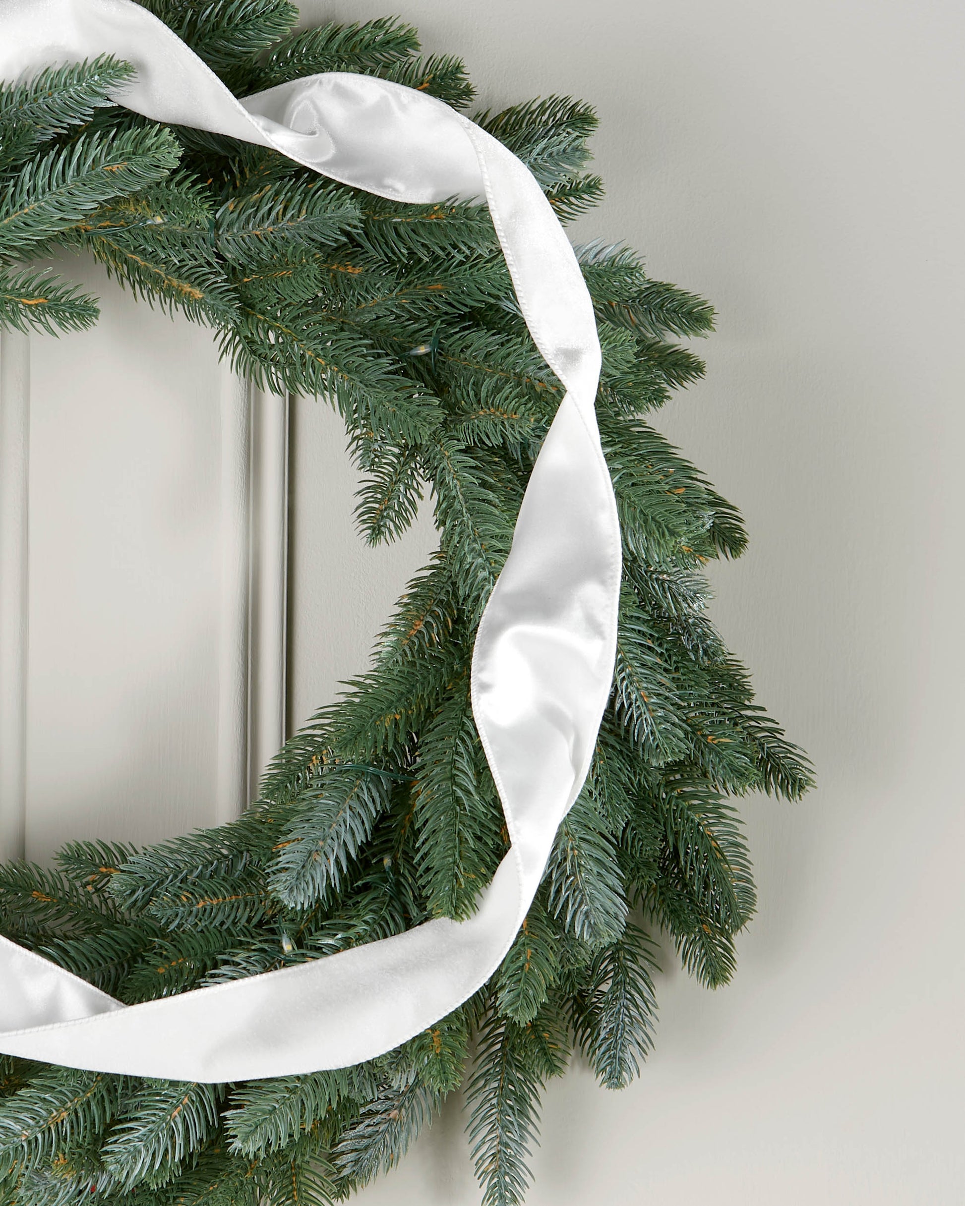 This 63mm wide ribbon features a sumptuous velvet front and a smooth satin back, both in a rich white that brings warmth to your seasonal projects. Measuring 9 metres, this ribbon creates stunning looks in trees, garlands, and wreaths, adding a refined touch to your festive décor.