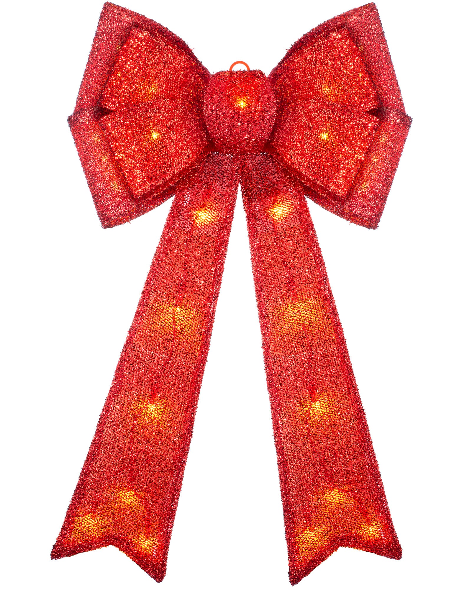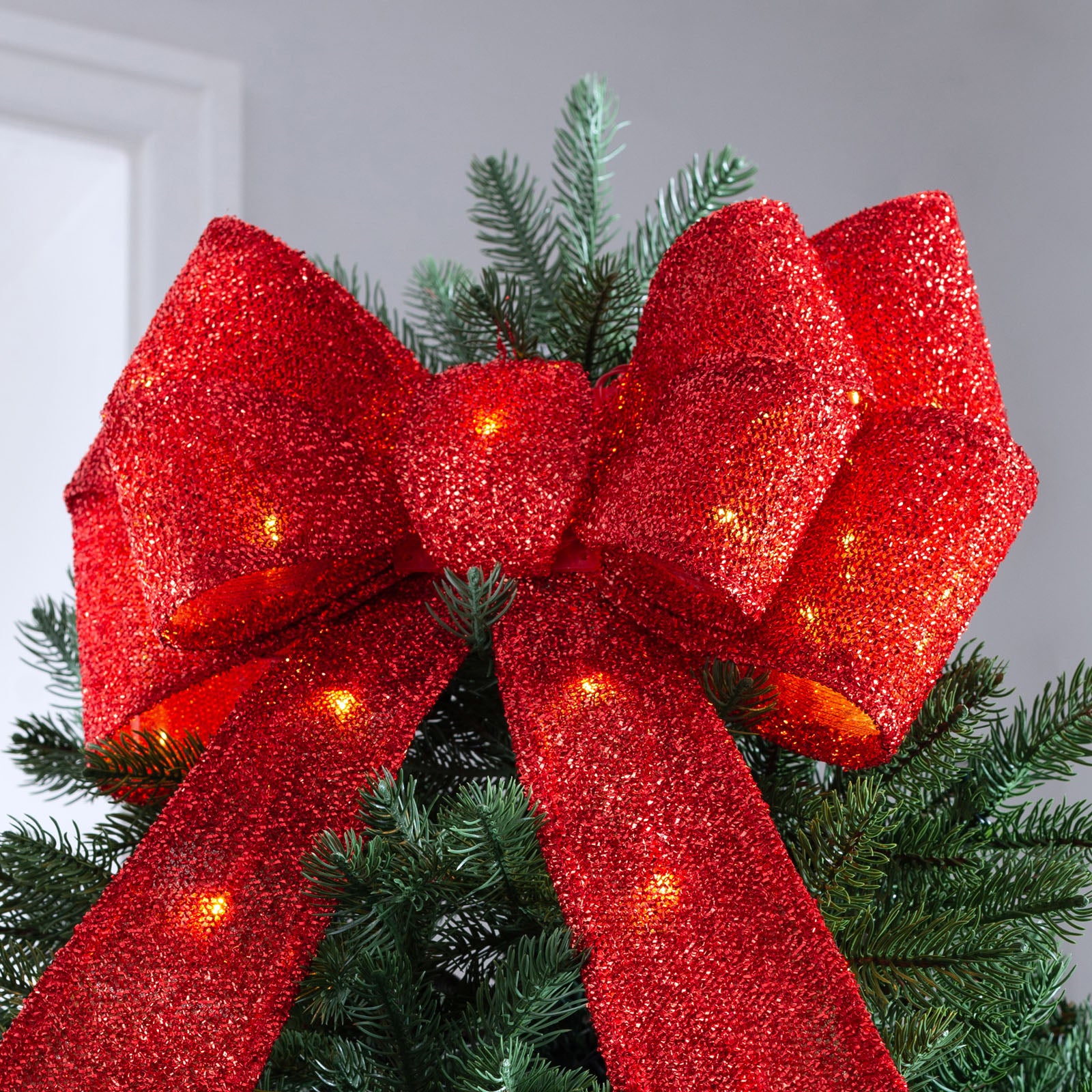 Pre-Lit Bow Tree Topper, Red, 60 cm