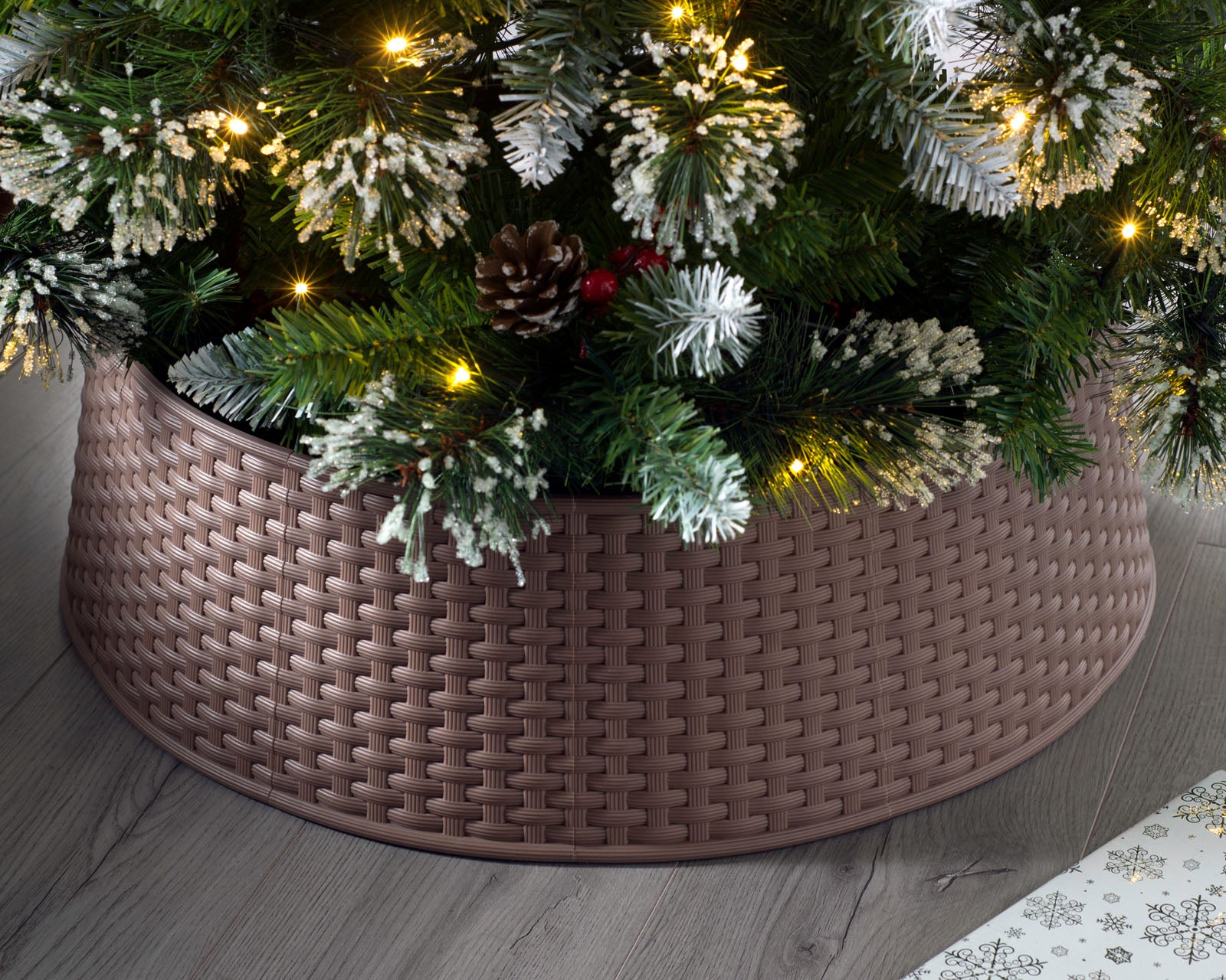 Complete your Christmas tree setup with the Brown Rattan Effect Tree Collar, 65 cm. This durable collar is designed to neatly hide stands and cables, creating a tidy base for real or artificial trees. Flat-pack design ensures simple storage between seasons.