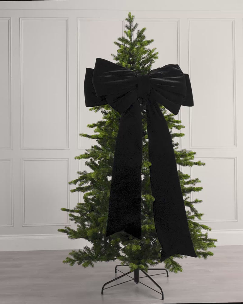 Ideal for topping Christmas trees with a minimalist yet striking accent or for hanging on doors to create a welcoming festive touch. The rich black velvet adds warmth and texture, making this bow a sophisticated addition to any seasonal setting.