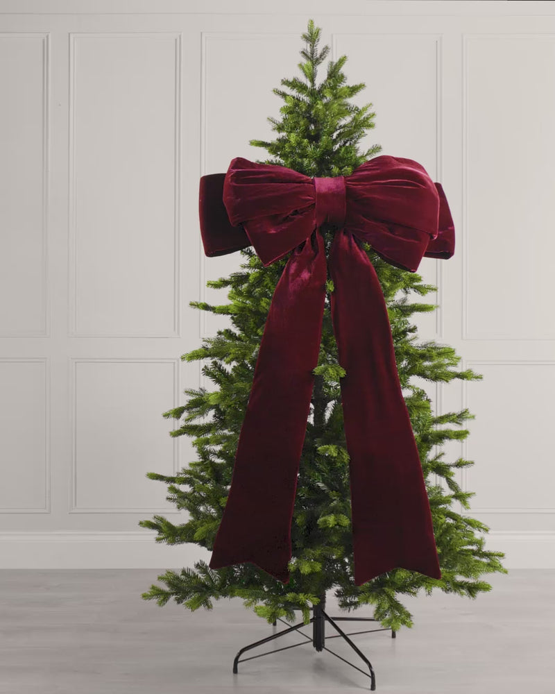 Ideal for topping Christmas trees with a minimalist yet striking accent or for hanging on doors to create a welcoming festive touch. The deep burgundy velvet adds warmth and texture, making this bow a sophisticated addition to any seasonal setting.