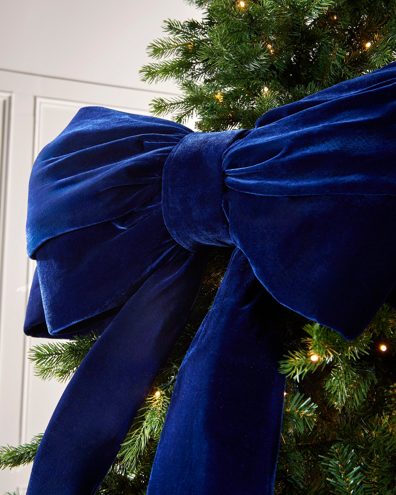 Ideal for topping Christmas trees with a minimalist yet striking accent or for hanging on doors to create a welcoming festive touch. The rich navy velvet adds warmth and texture, making this bow a sophisticated addition to any seasonal setting.