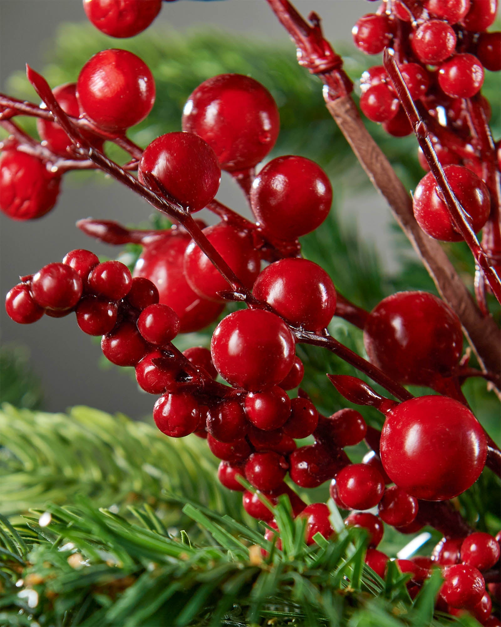 Add a pop of festive colour with this 40 cm red mixed berries spray. Featuring glossy red berries on natural-style branches, it’s perfect for Christmas trees, wreaths, garlands, or centrepieces. The 15 cm brown stem allows flexible positioning and secure placement. Designed for indoor seasonal use.