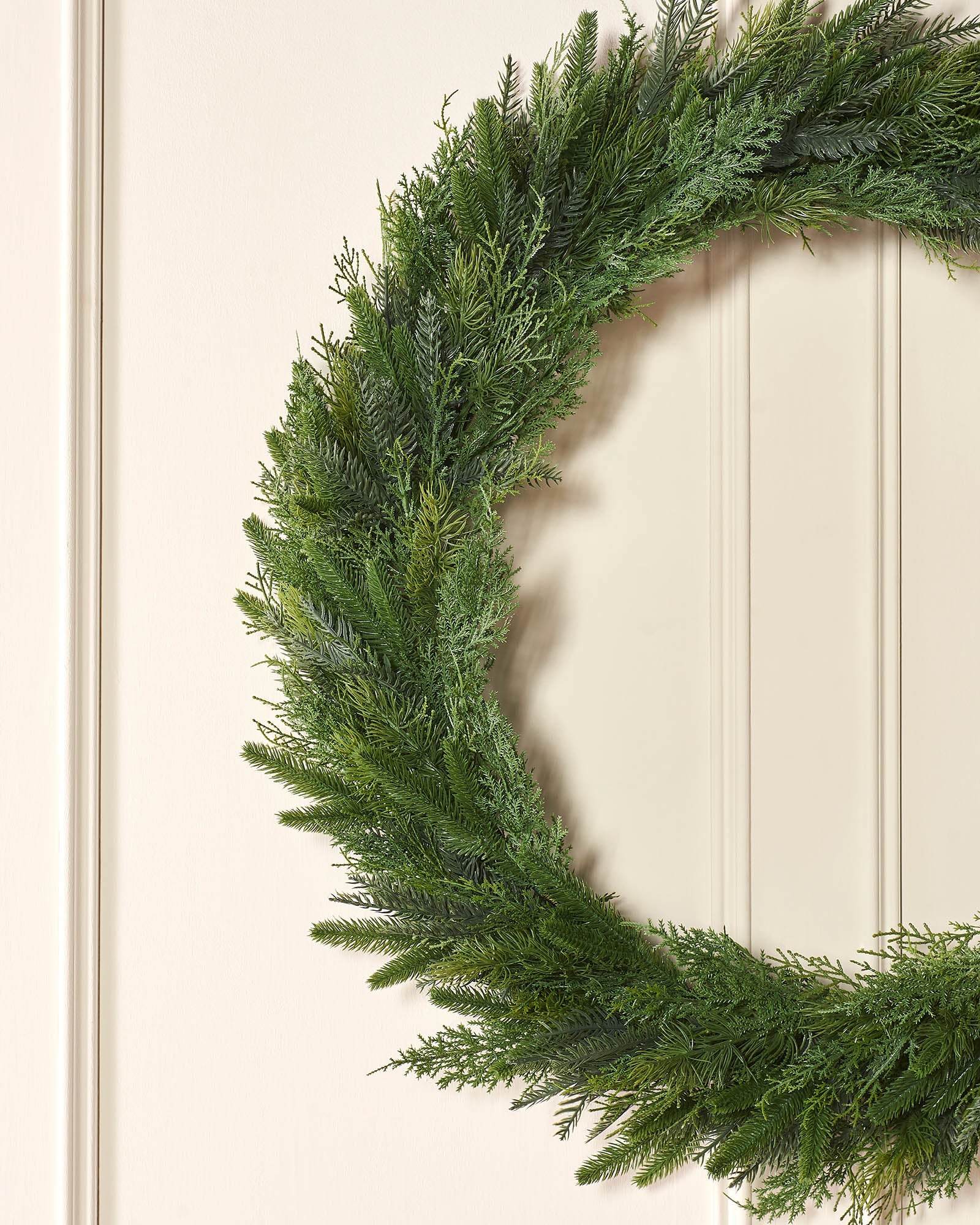 Whether styled minimally or adorned with baubles and ribbon, this unlit wreath offers a versatile foundation. Ideal for front doors, mantels or large interior walls. Suitable for indoor and covered outdoor use.