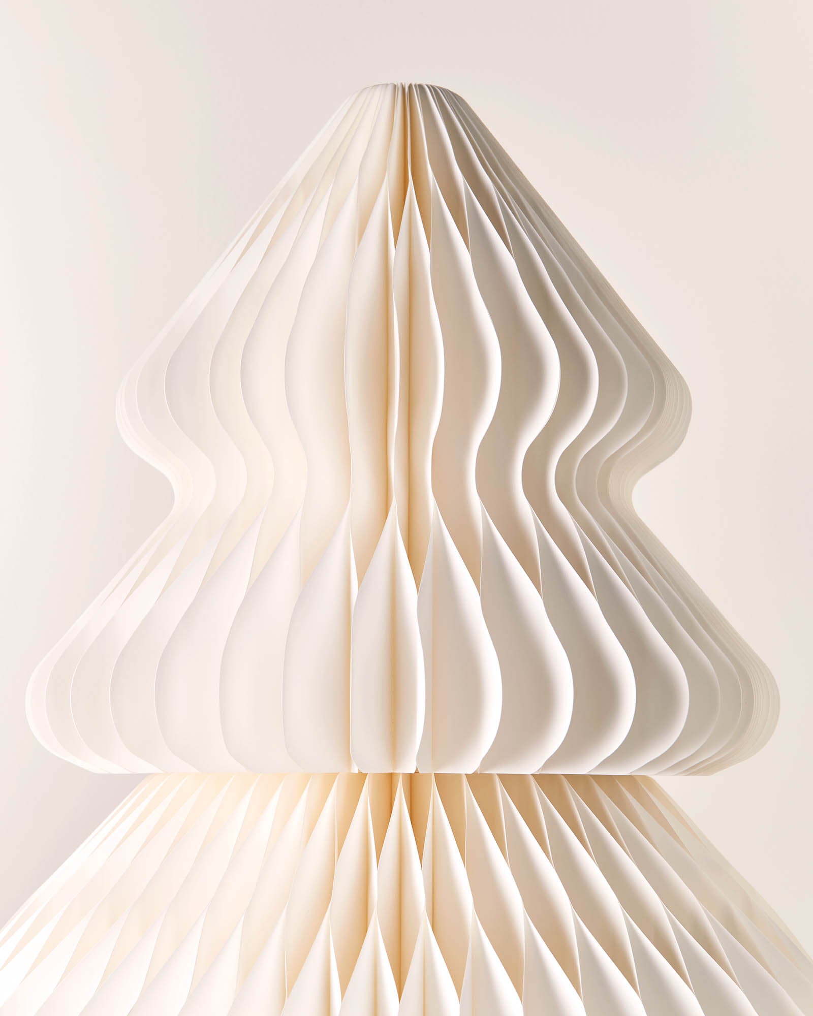 The 3 ft Standing Paper Tree combines simple design with sculptural form. Crafted from 120 gsm paper, it features 76 precisely cut panels arranged in four layers, creating a balanced, full profile.