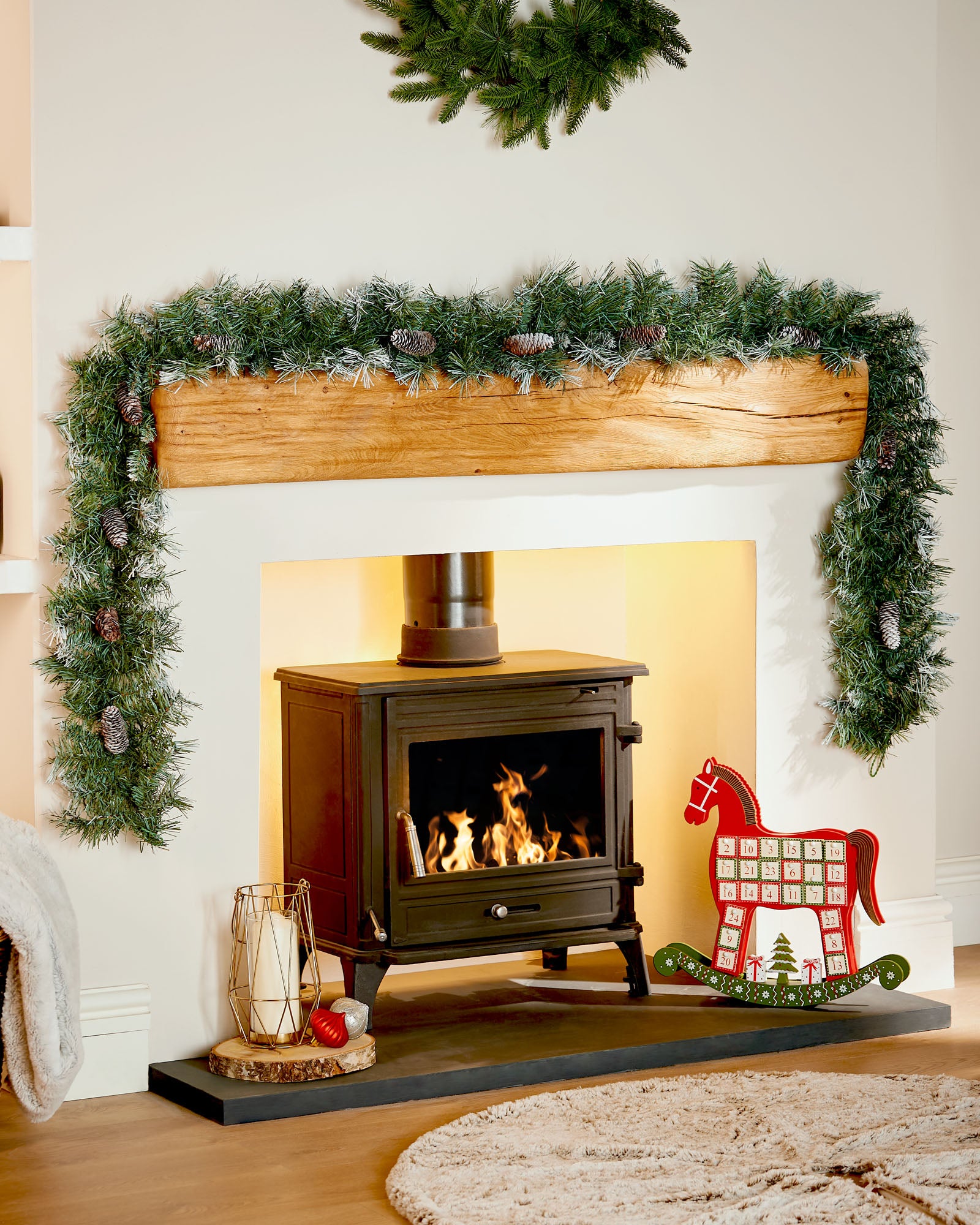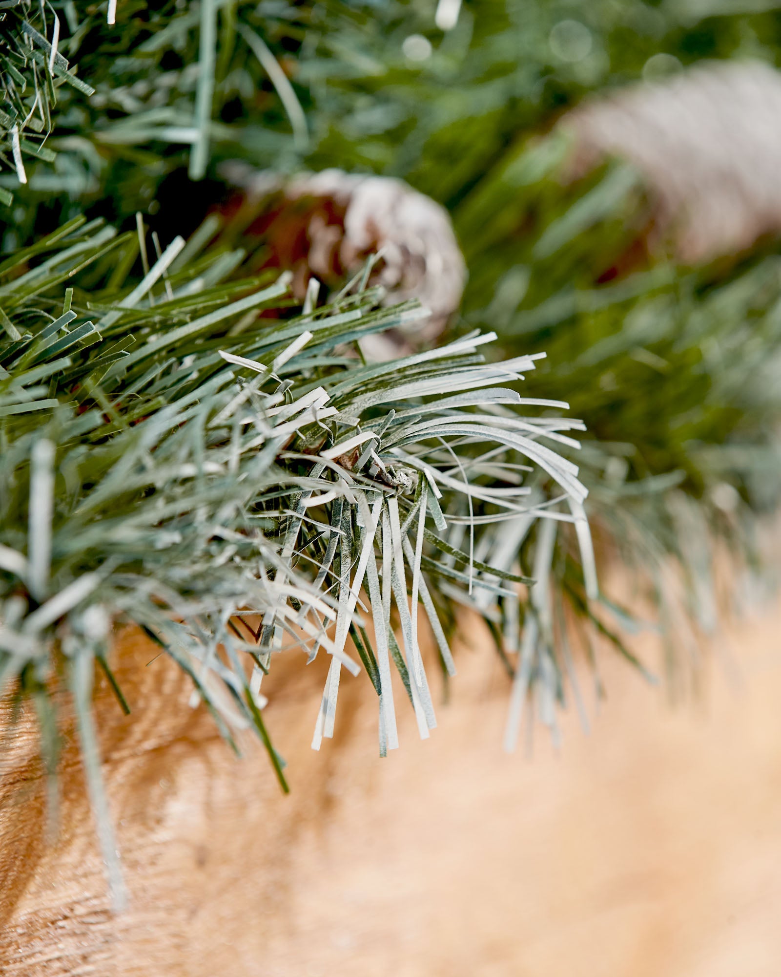 Embrace the serene beauty of a Scandinavian Christmas with this 9 ft Frosted Blue Spruce Garland. Featuring lifelike blue spruce needles in a vibrant frosted hue and accented with rustic pine cones, this garland brings natural elegance to your festive décor.