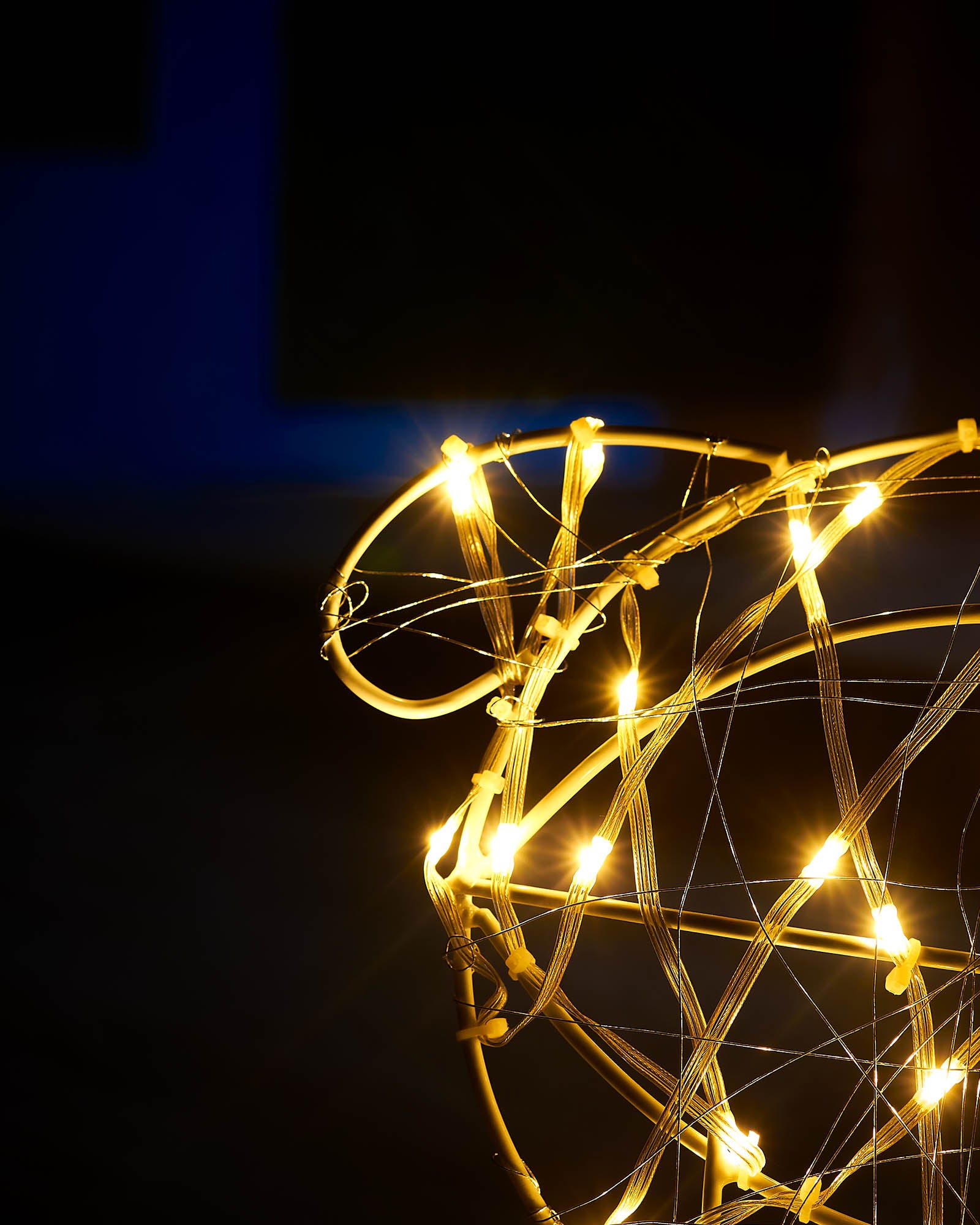 Freestanding with included earth spikes and plastic ties for secure placement, it is mains powered with a low-voltage transformer and suitable for indoor or outdoor use, provided the plug remains dry when used outside.
