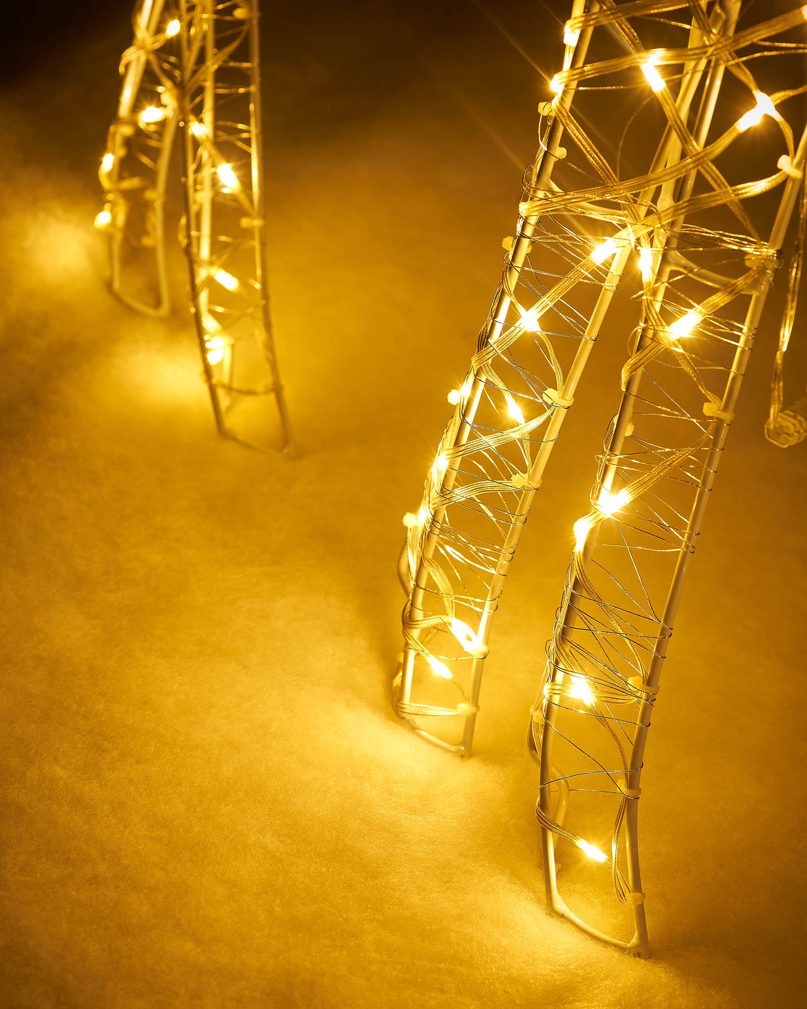Celebrate the season with this 2D grazing reindeer decoration, crafted from a durable metal frame and wrapped in 160 warm white LED copper lights. Measuring 55 cm (H) x 95 cm (L), it’s a charming addition to pathways, patios or interior displays.