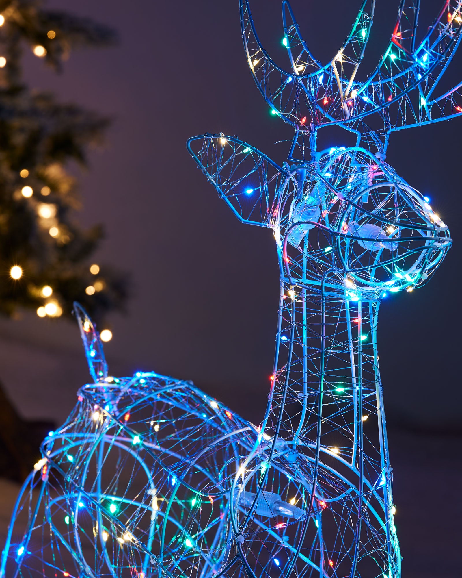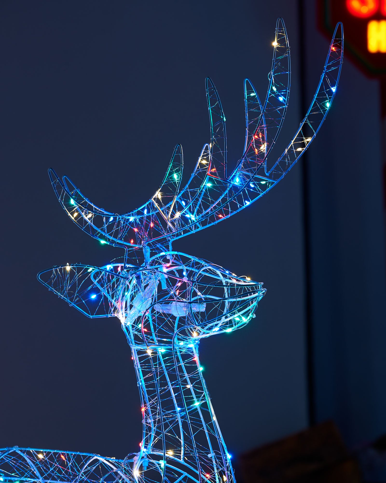 As the twinkling lights illuminate its intricate details, the stag appears to come to life, its imposing antlers reaching towards the sky. This reindeer silhouette is freestanding and includes 4 earth spikes and plastic ties for secure placement. Featuring 3 convenient sections, this accessory is easily assembled and should be safely stored away when not in use.