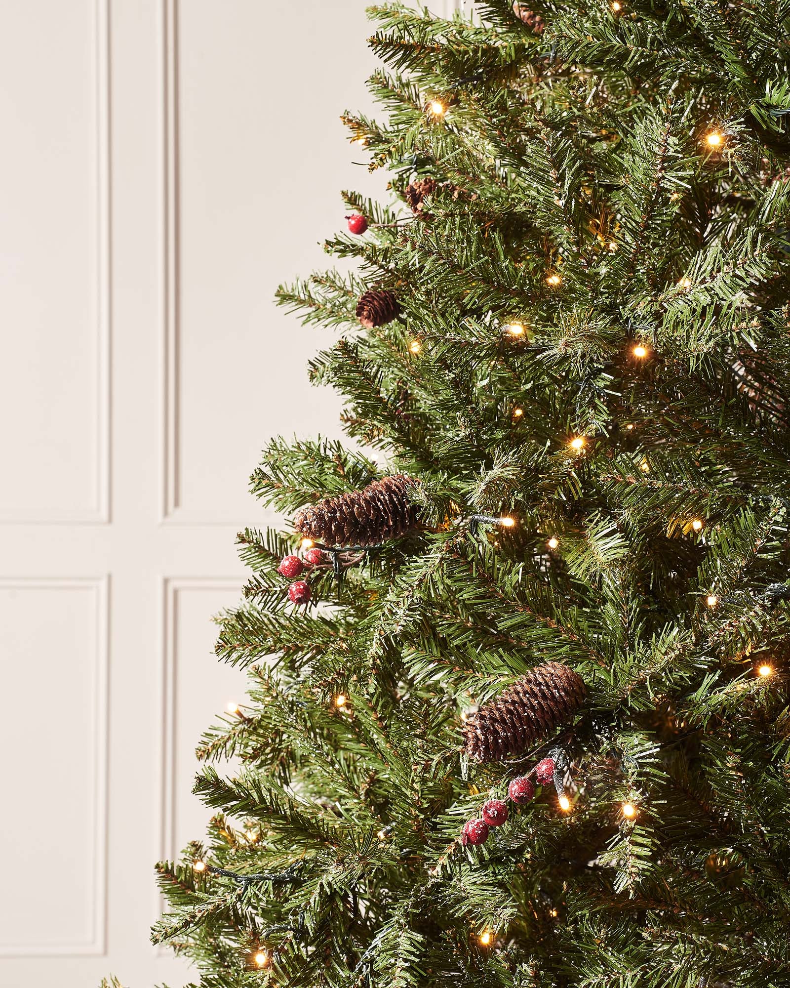 Capture the quiet magic of winter with this full-bodied 7ft Christmas tree, generously detailed with lifelike pinecones and rich red berries. Its layered silhouette features 2142 mixed PE and PVC branch tips, offering a lush, natural shape from every angle.