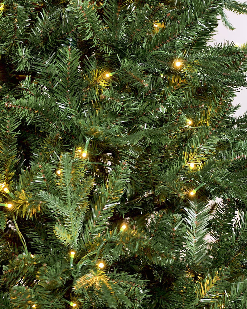 Immerse yourself in festive grandeur with this 1.5 m Pre-lit Grand Alaskan Fir Christmas tree. Spanning 122 cm (48 inches) in diameter, and crafted with 1,031 mixed PE and PVC tips, it brings a full, natural look that echoes the majesty of real fir trees. 300 dual LEDs are woven throughout its hinged branches, offering the choice between warm white or multi- colour light settings.