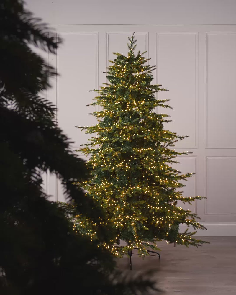 Lit with an extraordinary 3,950 warm white LEDs, each branch glows with consistent brilliance, offering unmatched coverage and atmosphere. The tree assembles in three hinged sections for easy, stable setup, and includes an 8-function memory controller with built-in timer (6 hours on, 18 hours off) for seamless day-to-day enjoyment. Finished with a 3-metre lead wire, this is a tree designed to impress — elegant, immersive, and made to last.