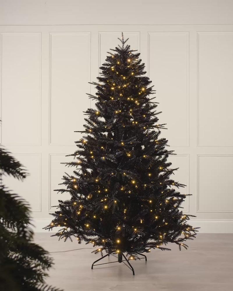 Bring a sophisticated edge to your festive décor with the 6 ft Pre-Lit Mixed Pine Black Christmas Tree. Crafted with 1,513 tips in a blend of moulded PE and soft PVC, its layered silhouette creates natural depth, while the deep black finish offers a contemporary alternative to traditional styles. Measuring 127 cm in diameter, it forms a striking, well-balanced profile.