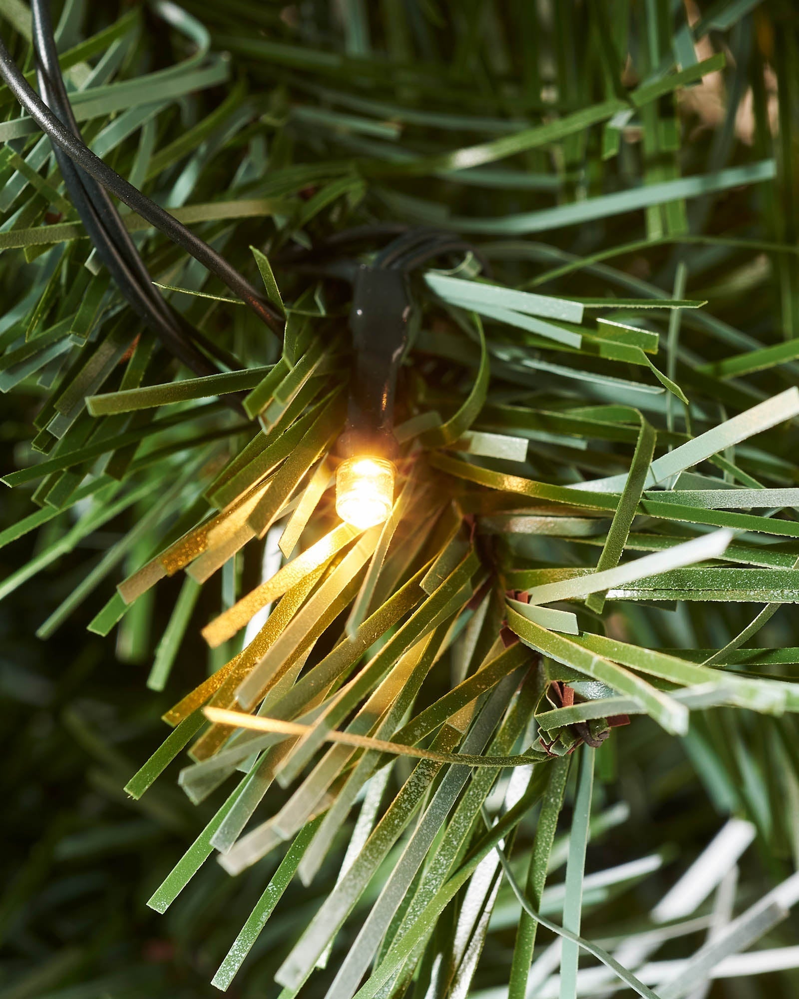 Bring festive charm to smaller spaces with this 4 ft Pre-Lit Scandinavian Blue Spruce Christmas tree. Measuring 46 cm (18 inches) in diameter and styled with 141 PVC tips, it offers a full appearance with a lightly frosted finish that captures the look of fresh snow. Natural pinecones and red berries complete the woodland-inspired design.