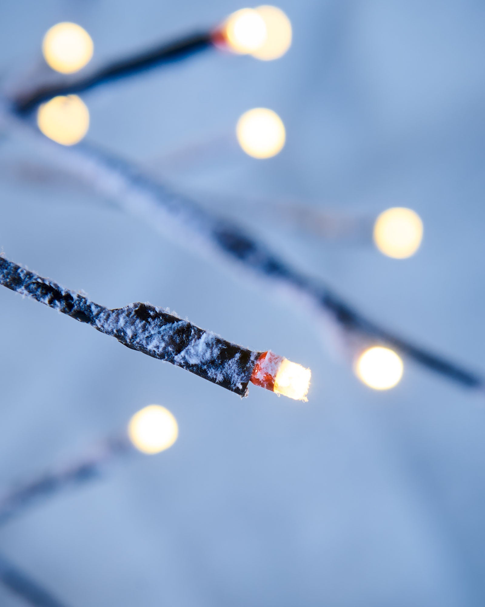 This 6 ft snow flocked twig tree adds scale and elegance to festive displays. Its slender natural branches are finished with snow-effect flocking, offering a graceful alternative to a traditional Christmas tree.