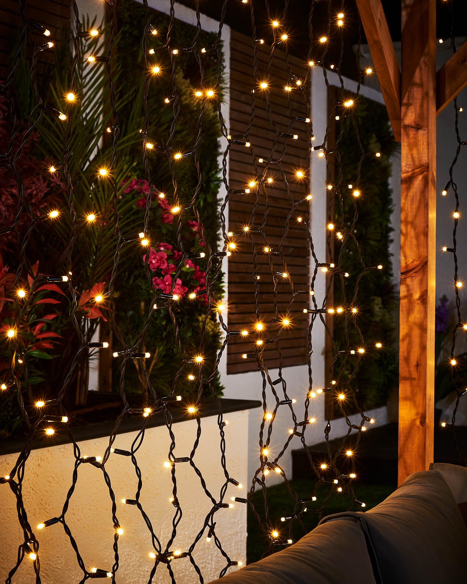 Each 2m section with a 2.5m drop is illuminated by 500 LEDs. These curtain lights connect to a Pro Series mains starter cable (sold separately). Multiple sections can be linked together. Up to 40m of curtain lights can be connected from a single starter cable – that’s an impressive 10,000 LEDs in total. Extension cables and splitters are also available for flexible layouts.