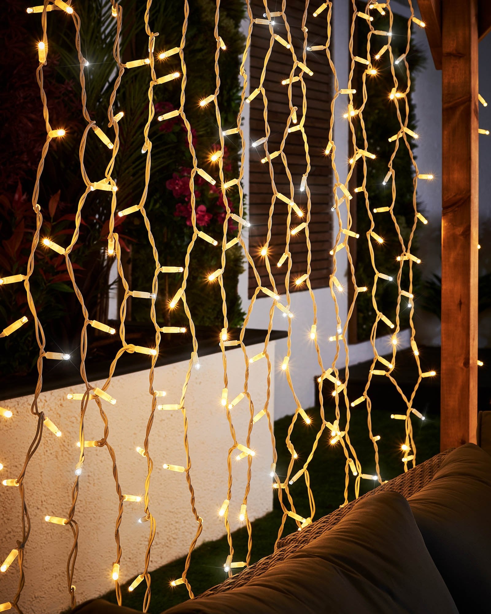 Choose these dual-tone curtain lights to create a clean, inviting backdrop that’s well suited for backdrops at winter weddings, Christmas parties or other residential and professional spaces.