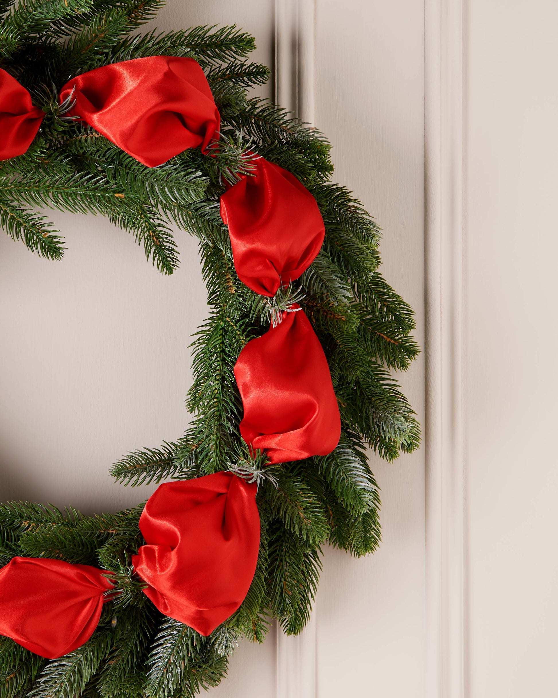 Made from smooth satin fabric with a soft, natural drape, it holds shape well and ties cleanly into bows or folds. Whether you’re dressing a staircase or refining your tree décor, this ribbon brings classic colour and an elegant sheen to any seasonal setting.