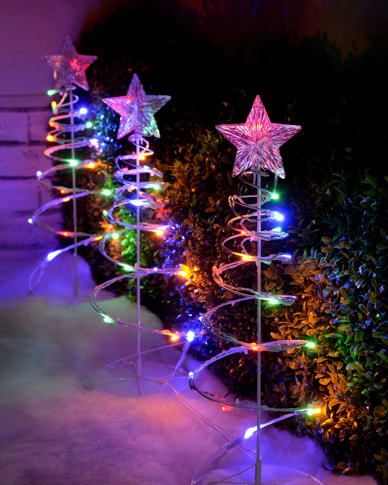 Add vibrant colour to your garden or pathway with this Set of 4 Spiral Tree Rope Light