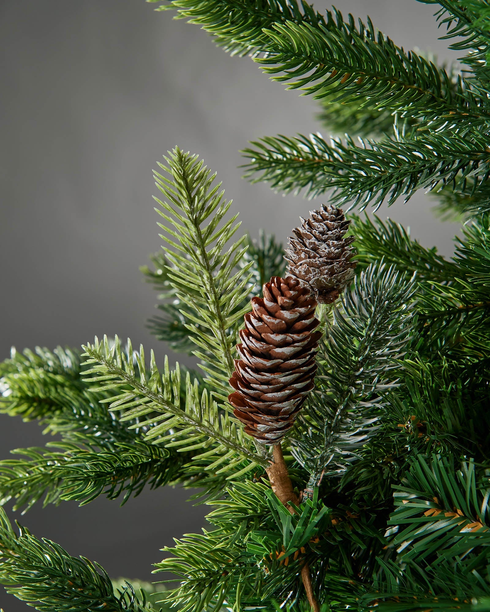 This set of 5 spruce pinecone picks is perfect for adding compact woodland texture to festive décor. Each pick measures 22 cm in total with a 7 cm stem and features spruce- style greenery with natural pinecones for seasonal styling. Ideal for Christmas trees, wreaths, garlands or table arrangements, they add depth and height to winter displays. Use singly for subtle accents or group together for a fuller effect.