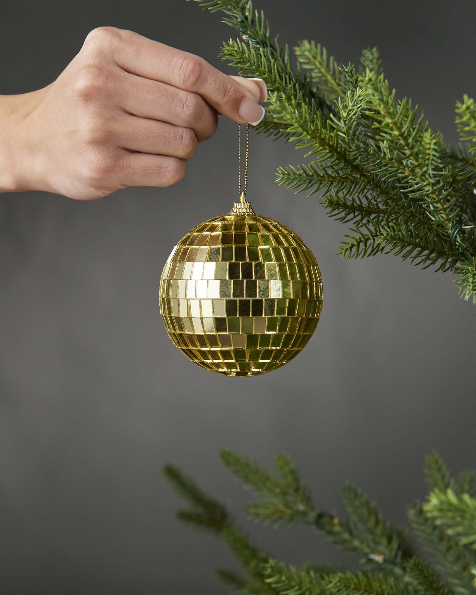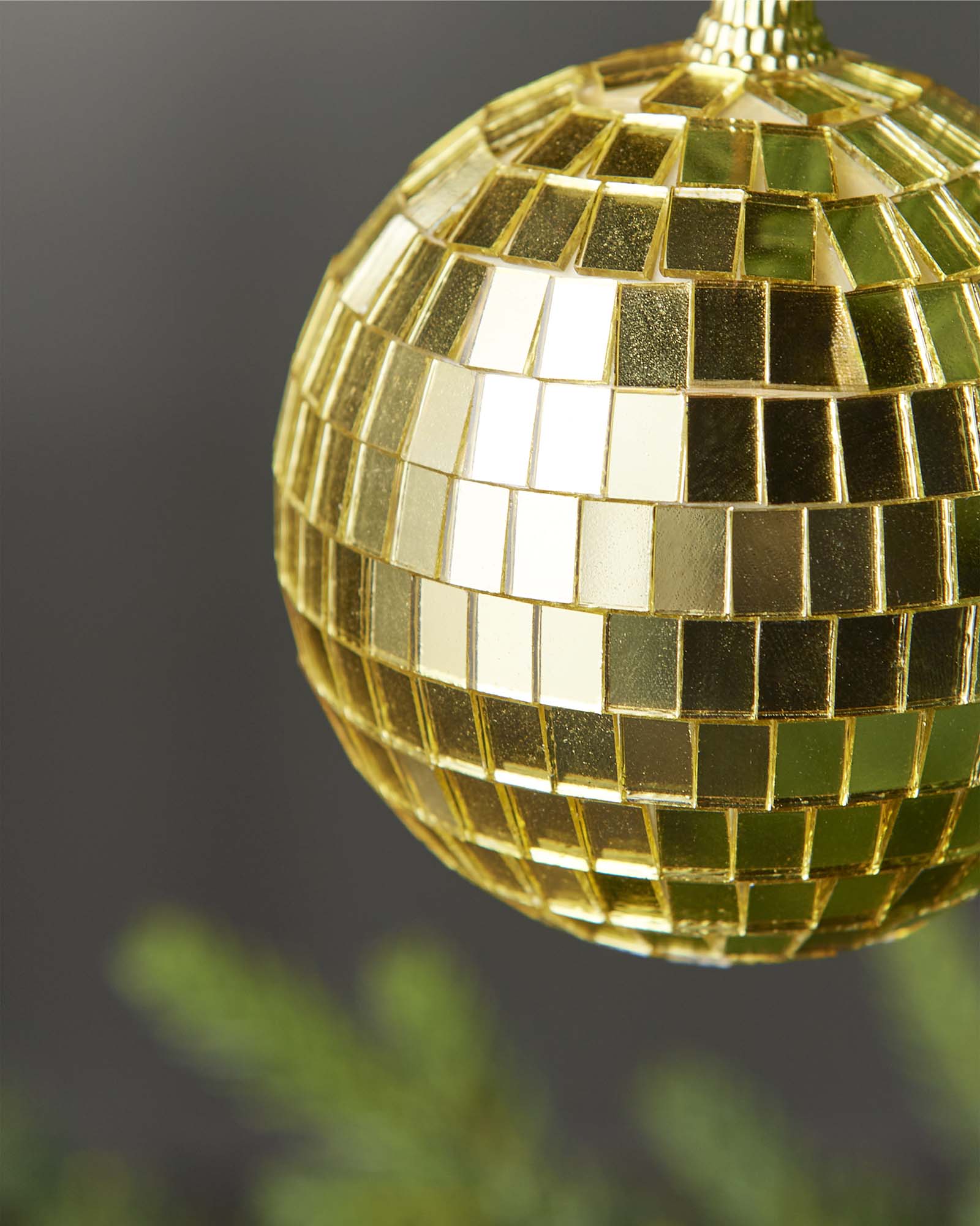 Add a touch of sparkle to your seasonal décor with this set of eight mirrored gold disco ball baubles. Each 8 cm bauble reflects light beautifully, creating a lively yet elegant effect on your tree or garlands. The warm gold finish complements both classic and modern themes, making them effortless to mix with existing decorations.
