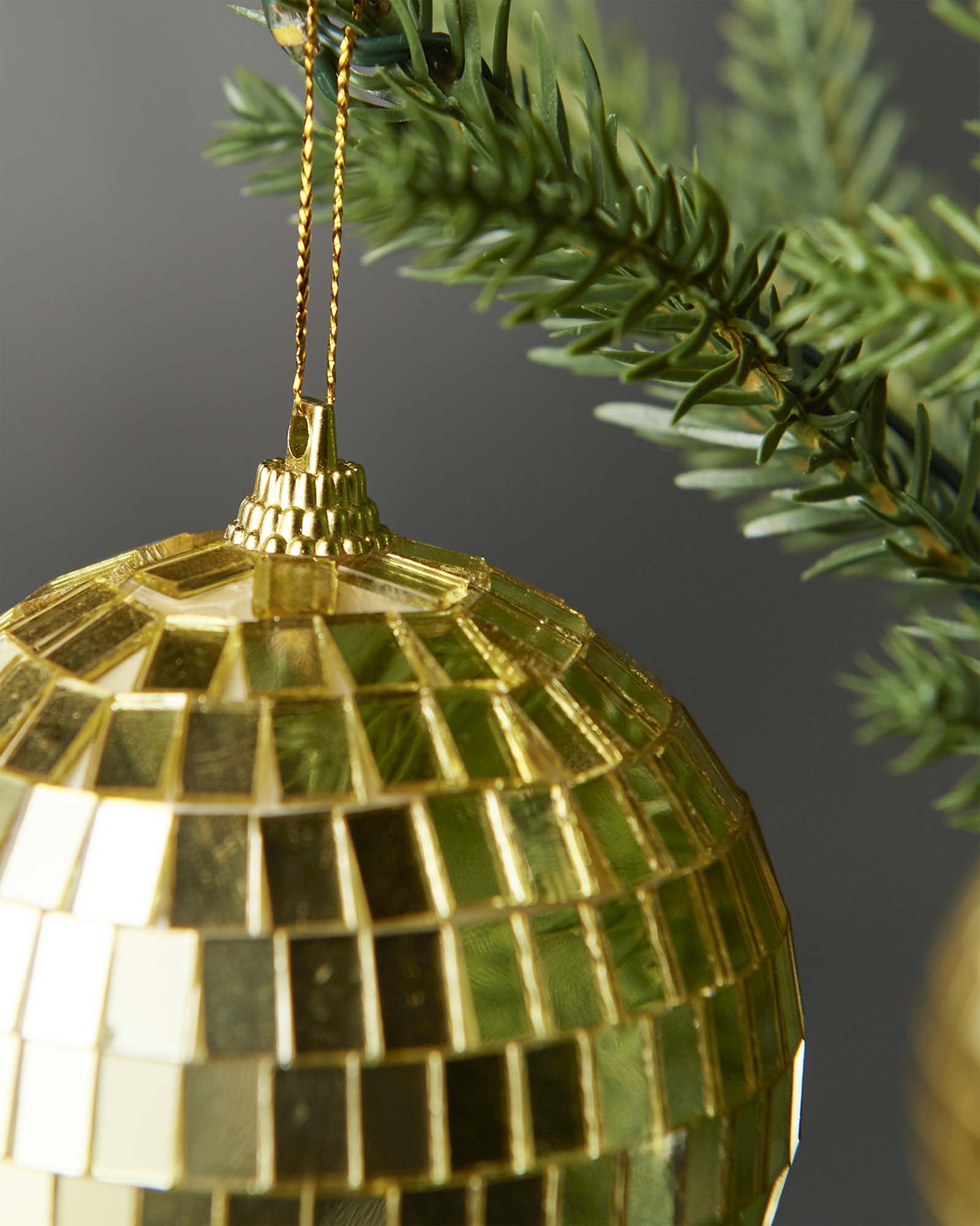 Set of 8 Disco Ball Baubles, Gold, 8 cm