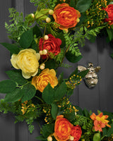 Start each day right by add one of our stunning Artificial Rose wreaths to your home. Strikingly designed with an array of orange and yellow flora, this colourful wreath is bright, bold and bound to enliven your décor.